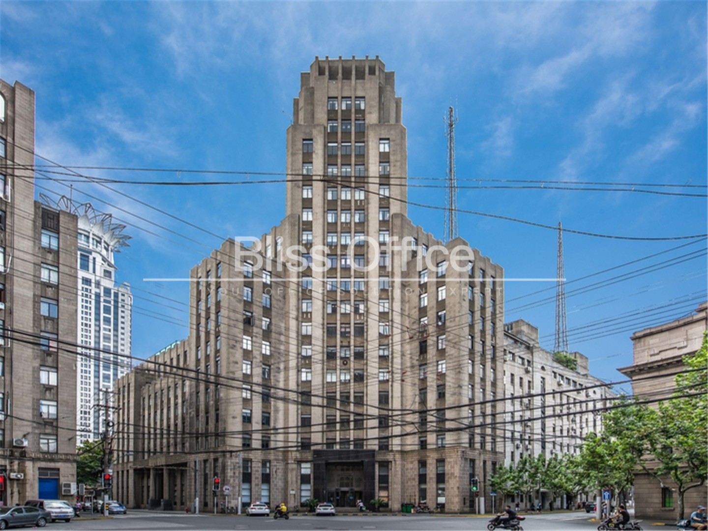江西中路181號建設大樓,全稱中國建設銀公司大樓,其建築地皮是茂盛洋行的。20世紀30年代上海灘不少商業銀行拆舊屋建造西洋風格的大樓,中國通商銀行在外灘6號的樓房不敷使用,1934年決定投資建樓。大廈由新瑞和洋行設計,陶桂記營造廠承建,鋼筋混凝土結構,1936年7月竣工。設計時,為了與漢彌爾登大樓、都城飯店大樓的協調,故立麵造型以豎直線為主,建築上部逐層收縮,力求體現現代派簡潔明快的風格。