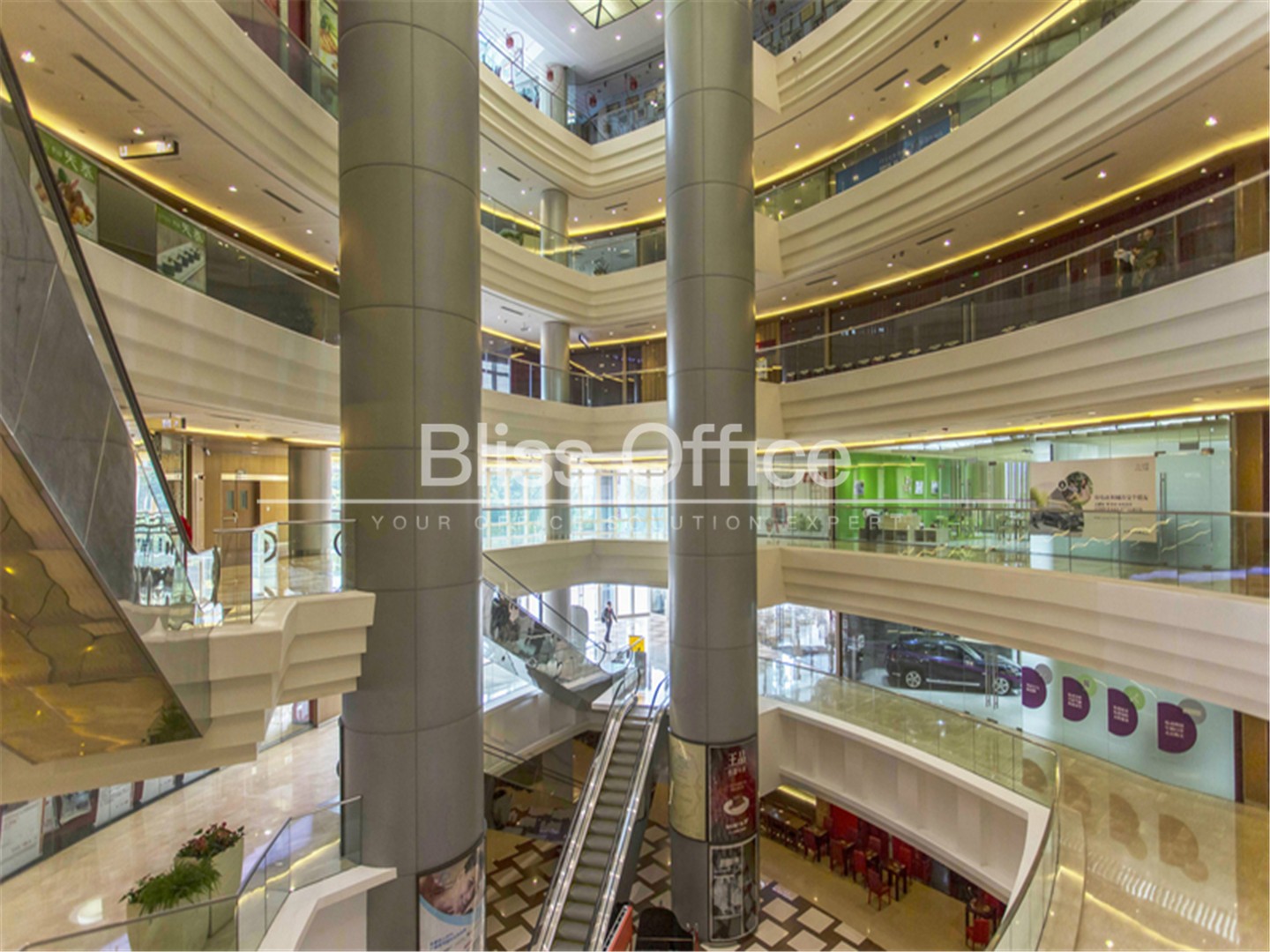 設有寬敞的廣場和氣派非凡的入口大堂。廣場的垂直交通係統,采用由瑞士迅達提供的17台原裝進口Schimdler300TM係列電梯糅合含現代建築幾何形態及玻璃幕牆的立麵設計,以及擁有長達百米的精品櫥窗,都映照出路人豔羨的目光。辦公樓部分由內至外均精心設計裝修,用料上乘,從大堂進口至升降機大堂,均采用花崗石及高級進口雲石牆配雅致玻璃設計,沉實而穩重,盡顯非凡氣派,反映出整個廣場雄偉風格。宏偉的立麵以船首形象塑造,與購物娛樂的大堂進口構成一標誌性“旗艦”。淩空百米之上,建造了一個全上海獨一無二的縱貫四層樓的玻璃館美輪美奐,充滿創意,獨特的商店設計,加上主題明確的中西特色美食、餐飲等令人回味無窮,得而忘返。而全麵的生活理念在仙樂斯廣場更盡顯無疑,除了滿足口舌之欲的極至美食,美容美發、娛樂休閑等全麵配套服務同時啟動;除了可以享受各式美食,更有優質的兒童及嬰兒用品,美容個人護理及其他特色商店讓您心曠神怡。吃喝玩樂在仙樂斯廣場一個空間裏就可以得到滿足!