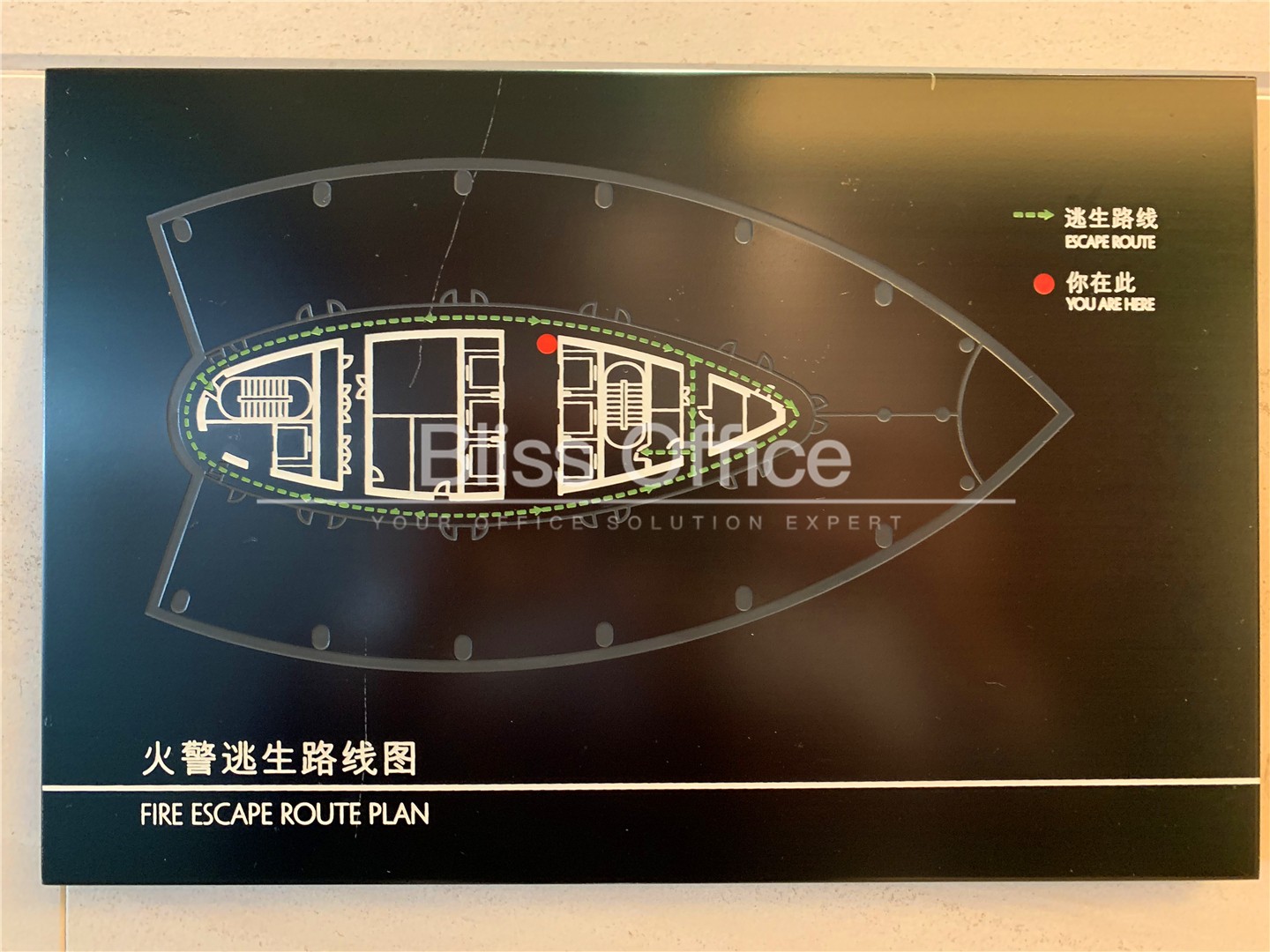 玻璃外牆通透亮麗,室內色調以天空的藍和草原的綠為主要基調,每個樓層都由自然元素延伸出來的顏色為標準色來進行區分,室內天花板和地麵的裝飾多使用楓葉和竹林的質感和效果,室內、外導向標誌獨樹一幟。樓內地麵鋪設架空地板,新風係統。